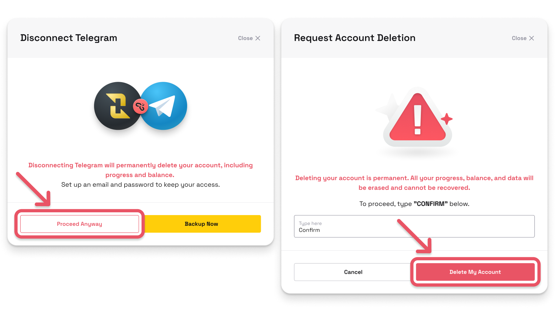 ***NOTE:⚠️ This will permanently delete the mistakenly created account, including all progress and balance associated with it.***