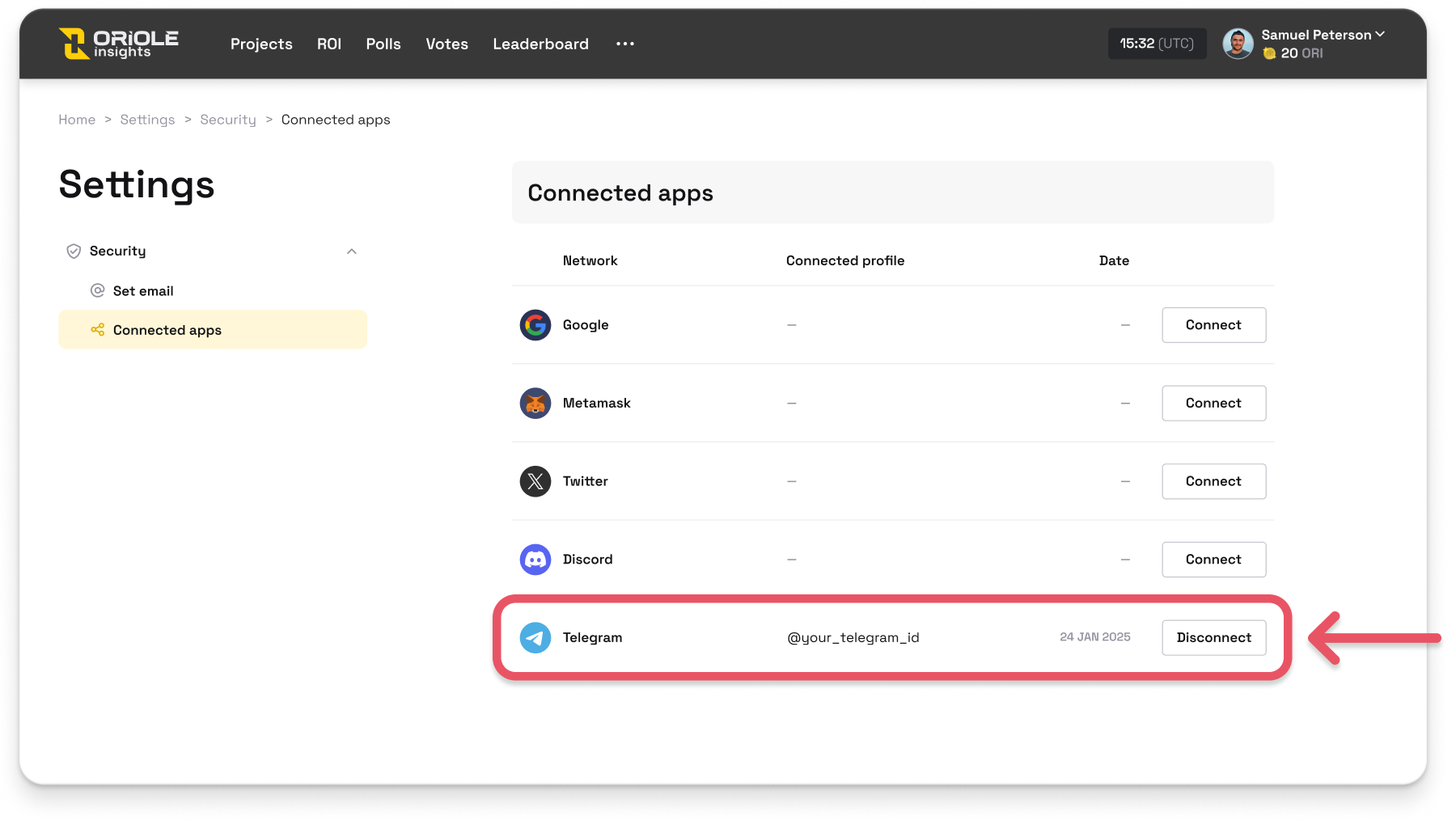 If you accidentally created a new account in the Oriole Insights Telegram Mini App but already have an existing account on the web platform, follow these steps to unlink Telegram and connect your real account: